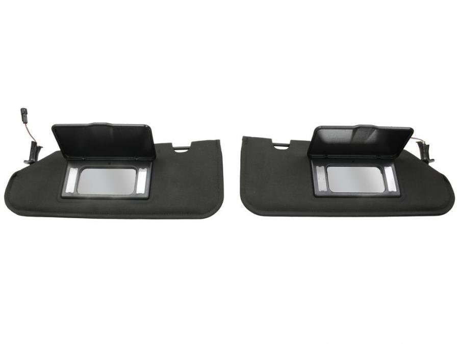 Exact Reproduction Sunvisiors for Your C6 Corvette. With Correct Air Bag Warning Labels on One Side and Lighted Vanity Mirrors on the Other Side. Includes Electrical Wires and Plug.