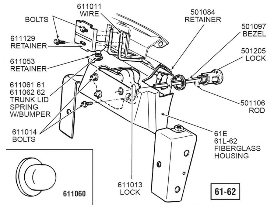611060 1961-1962 Trunk Lid Pop-Up Spring Bumper