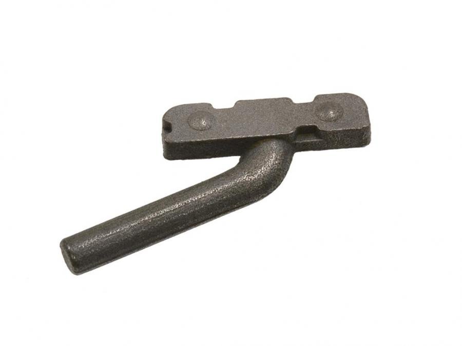 Stainless Steel, spotwelds to vent window frame.