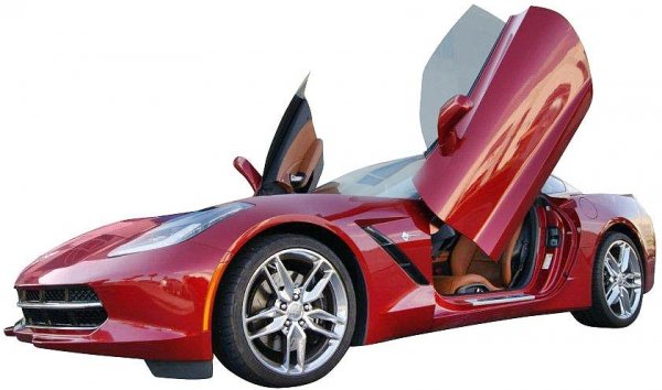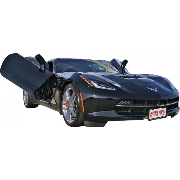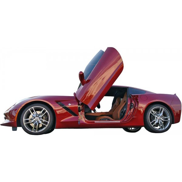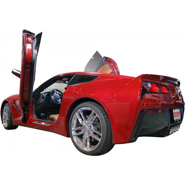 2014-2017 Corvette owners can now have a truly exotic "Lambo door" appearance with our vertical door kit. They retain the factory look and feel of your doors...until you stop and raise them! Our vertical door kit IS an attention getter and will separate you from any crowd...including exotic sports cars! Your doors will glide open smoothly with the windows up or down. This vertical door kit is proudly made and patented in the United States. It is specifically designed and engineered to fit your factory C7 Corvette doors and ships complete with everything necessary for installation. Professional installation is required and will take approximately 1 day. Retain your factory hinges and hardware and you'll be able to return to stock.