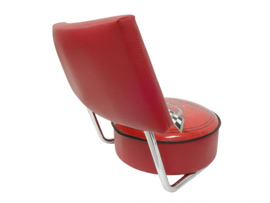This Corvette C5 Bar Stool will be the highlight of your bar or gameroom. This is a very high qualitystool with a beautiful, full-color logo printed on the padded seat. A back-rest has been added for ultimate comfort.