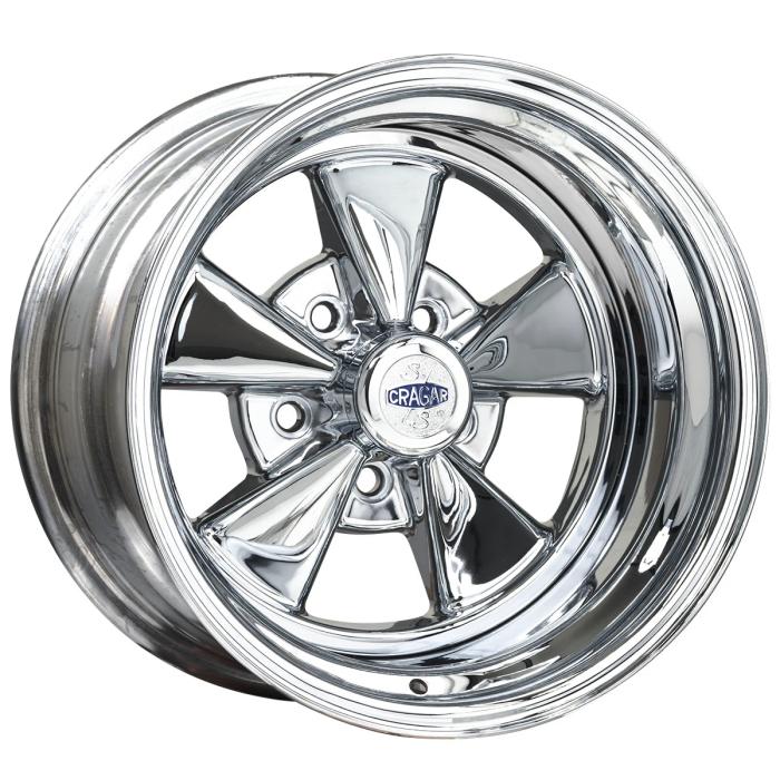 This 15x10 Cragar SS wheel features a 5x4.75-inch bolt pattern, offering fitment for many Chevrolet, Pontiac, Oldsmobile and Buick muscle cars. Cragar wheels give your hot rod, muscle car, classic truck or gasser the perfect old school look. The Cragar SS Series 61C takes the timeless design and gives it proper fitment with direct drilled bolt pattern, instead of the old uni-lug design. The extra wide configuration features 4.25 inches of backspacing, making them a great for the rear of a street machine, day 2 muscle car, T-Bucket, old truck and many other applications. Cragar SS wheels are built with a steel rim and aluminum center, and feature a show-quality chrome finish. The 61C features a conical lug nut seat, and bulge seat lug nuts are suggested (sold separately). The chrome plated center cap with iconic Cragar S/S logo is included with every wheel.
