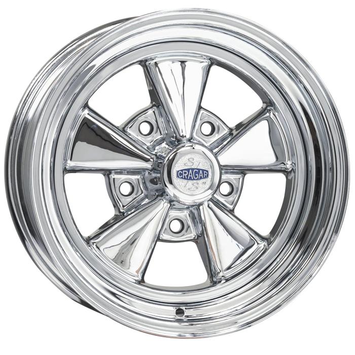 The 15x7 Cragar SS wheel is the perfect fit for a classic muscle car. The Cragar SS Series 61C features a direct drilled 5x4.5-inch bolt pattern, which fits classic Ford Mustangs and Torinos, as well as Mopar muscle cars, like the Dodge Charger, Dodge Coronet, Plymouth 'Cuda and many more. You won't have to deal with uni-lug washers. Simply use bulge seat conical lug nuts and you're good to go. The 15x7 Cragar SS features 4 inches of backspacing, allowing it to fit under thousands of vehicles, and it will clear factory disc brake systems and some aftermarket disc brake kits (be sure to measure before you buy). You can't go wrong with the classic styling of the Cragar SS wheel, and we're proud to combine them with our extensive line of authentic tires. Cragar wheels feature a steel rim with an aluminum center, and features a show-quality chrome finish. The chrome plated center cap is included with every wheel.