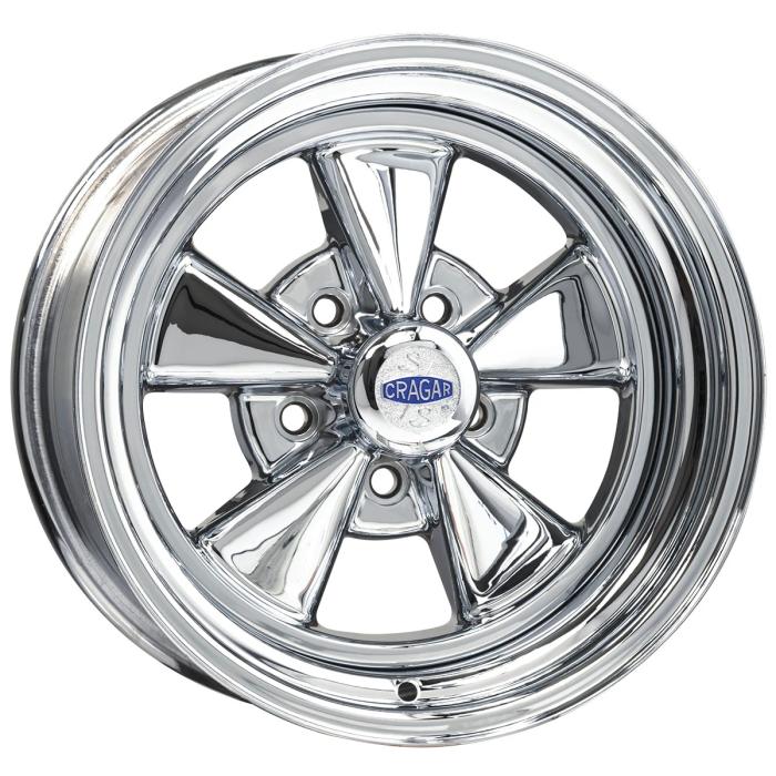 The 15x8 Cragar SS wheel is the perfect fit for a muscle car, hot rod or classic truck. The Cragar SS Series 61C features a direct drilled 5x5.5-inch bolt pattern, which fits classic Ford pickup trucks, as well as 1928 through 1948 Fords, if you're looking to give your old school hot rod some 1960's styling. Thanks to the direct drilled bolt pattern, you won't have to deal with uni-lug washers. Simply use bulge seat conical lug nuts and you're good to go. The 15x8 Cragar SS features 4.25 inches of backspacing, allowing it to fit under thousands of vehicles, and it will clear factory disc brake systems and some aftermarket disc brake kits (be sure to measure before you buy). You can't go wrong with the classic styling of the Cragar SS wheel, and we're proud to combine them with our extensive line of authentic tires. Cragar wheels feature a steel rim with an aluminum center, and features a show-quality chrome finish. The chrome plated center cap is included with every wheel.