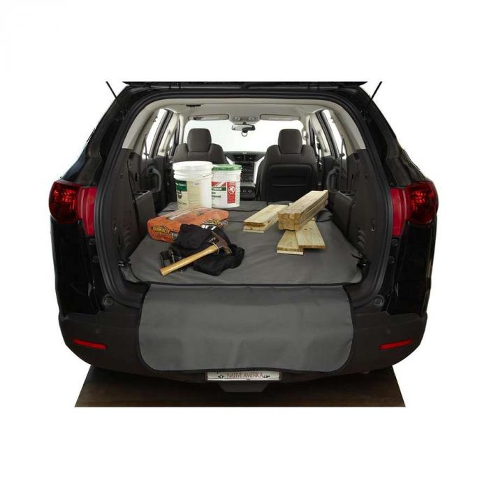 Custom Cargo Area Liners protect the entire floor area and seat back. Hook & loop strip allows split seats to operate. Made with tough, waterproof, urethane-coated polyester fabric. A fold-out bumper flap is included for additional protection of the bumper area. Custom Cargo Area Liners are perfect for hauling plants, groceries, sports equipment or anything else that you need to protect the cargo are from.