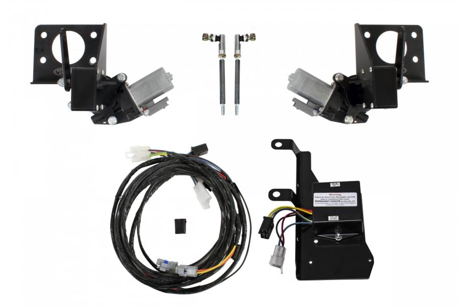 The kit comes complete with everything you need for installation including two electric actuators, a control module, harness, mounting brackets, and hardware.