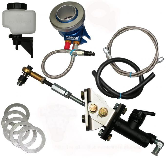 Skip the clunky old mechanical linkage and install American Powertrain Hydramax hydraulic clutch release systems. They easily install in almost any rear-drive vehicle. The patent-pending adjustable master cylinder bracket allows you to mimic any original clutch rod angle, giving you a smooth, modern clutch feel without hacking up your firewall. The systems are designed to work with original and aftermarket pedals and are available for most vintage 4-speeds, along with TREMEC t5, TKO, Richmond, T56, and Magnum 6-speed transmissions. These systems come with the nickel plated firewall mount, volume-matched master cylinder, as well as a reservoir kit, lines, fittings,model-specific pedal mounting hardware, and model specific internal or external slave cylinder.
