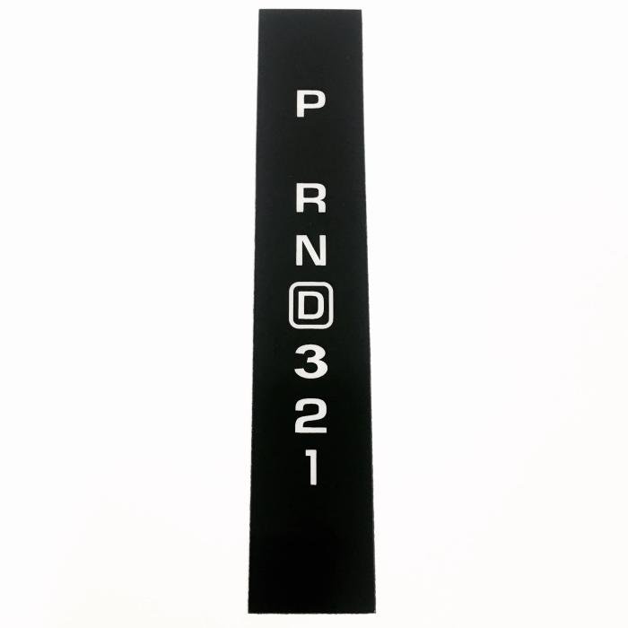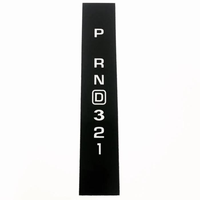 Console indicator upgrade for a factory console with display for 4-speed OD or 6 / 8-speed automatic transmissions. These indicators may be installed over the existing indicator as an overlay. They are black with translucent lettering.