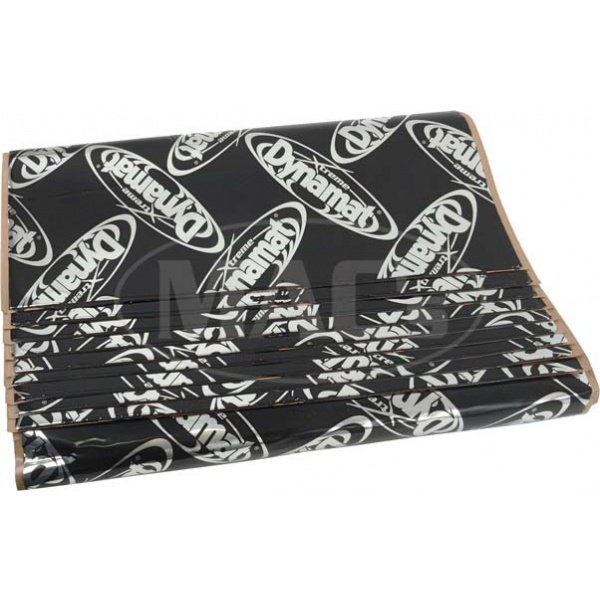 Dynamat is the number one name in sound deadeners. For years, we have sold the original Dynamat and can boast of thousands of satisfied customers. We are now proud to offer the next generation of Dynamat sound deadeners, Xtreme. Xtreme is a step up from the original formula and is Dynamat's best product at controlling vibration. It damps 4 times as much as the original Dynamat and as an added bonus, it weighs 50% less. It is available in conveniently sized 18" x 32" sheets and with peel & stick application- it goes on quickly and easily. Designed to enhance stereo performance, dynamat is made to absorb rattles, squeaks, vibration, and road noise. This flexible material can be applied to any flat as well as contoured surface such as doors, floors, firewalls, or even the roof. Adhesive backing makes installation easy. Do yourself a favor and order some today!