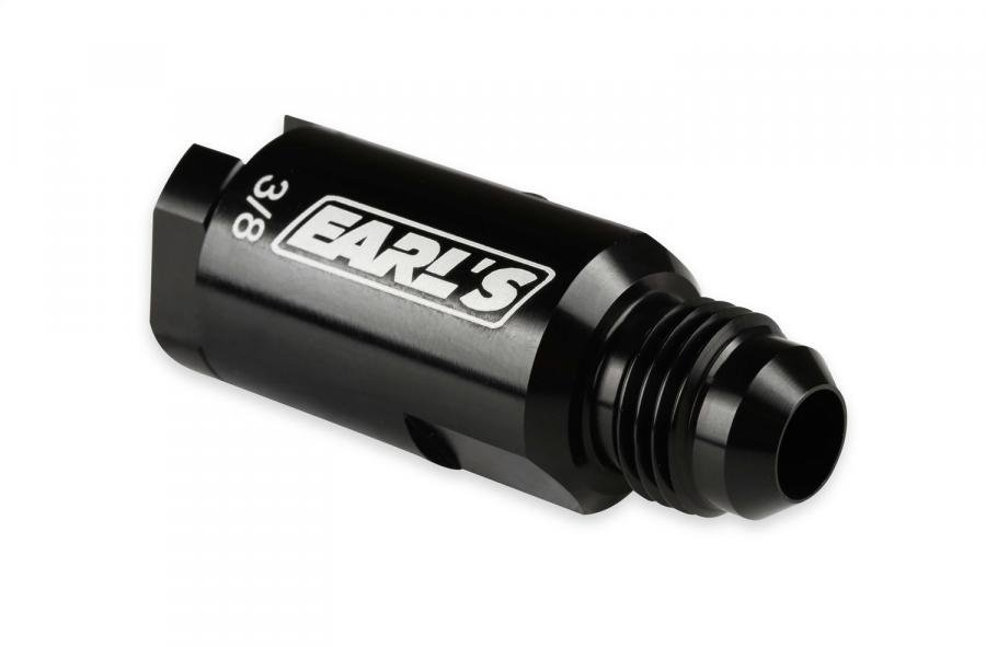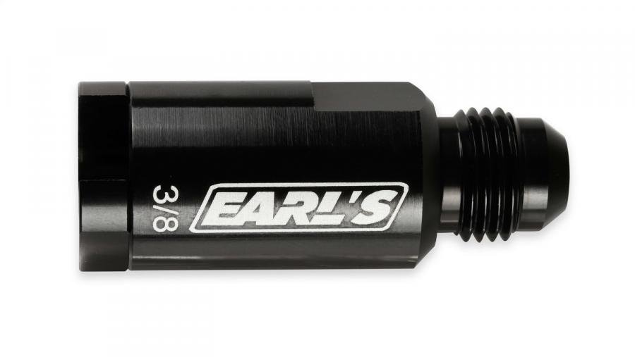 The Earl's Vapor Guard™ product line has been expanded to include O.E. fuel line quick connect fittings. These adapter fittings allow an easy way to re-use existing OE (Original Equipment) fuel rails, fuel filters, and other components when doing an engines swap, or upgrading to Vapor Guard™ (or other AN Plumbing). Each fitting has a -6 AN Male Flare, and a metal retainer nut for a secure leak-free connection to the 5/16" or 3/8" SAE style fuel tube. Constructed from 6061 T6 aluminum w/ black anodized finish.