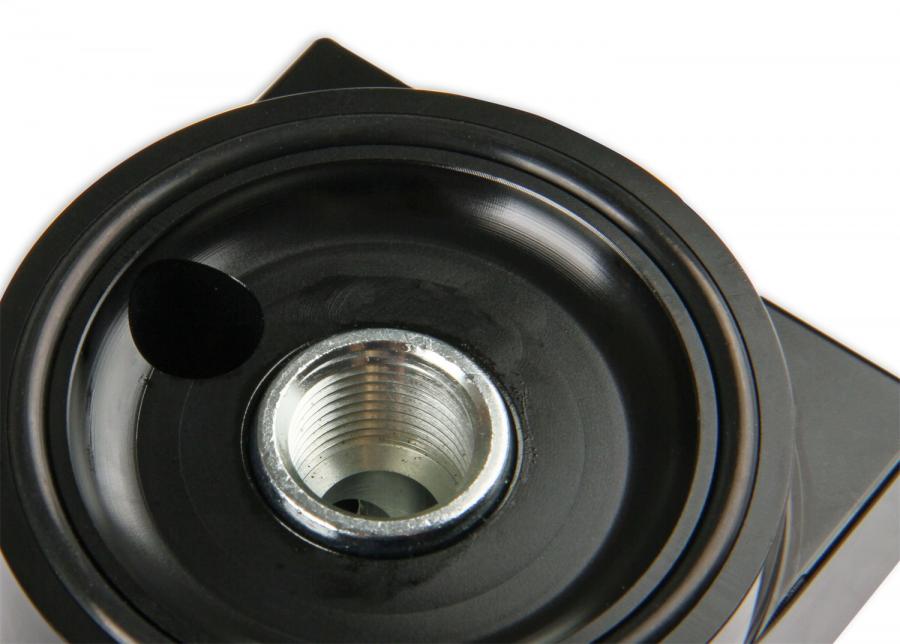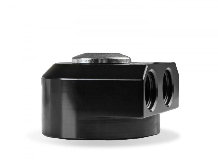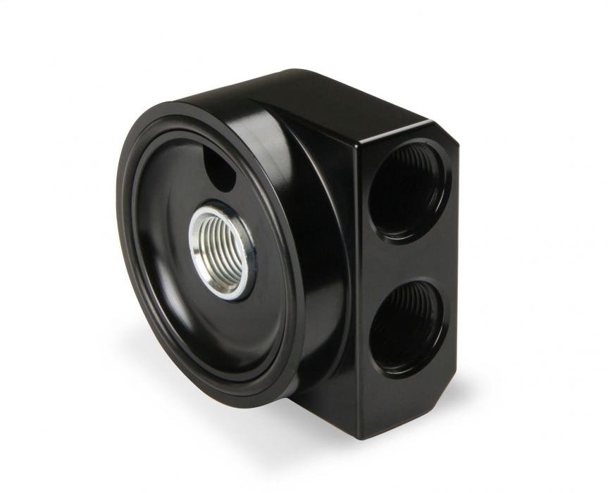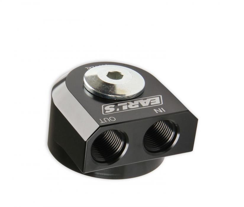 Earl's oil filter adapter allows you to relocate the oil filter to another location for better access or extra clearance. This adapter fits in plate of the oil filter and features -10 AN Female O-ring ports - use w/ O-ring port adapters (available separately). CNC machined from billet 6061-T6 aluminum, w/ black anodized finish.