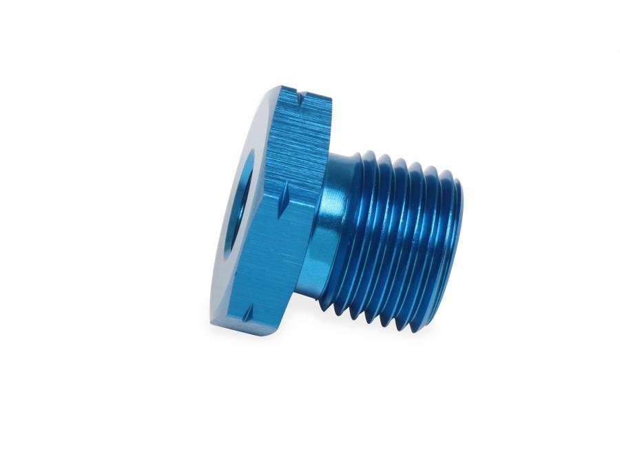 Earl's new adapter fittings are ideal for installing an after-market oil pressure gauge on GM LS engine swaps. These fittings screws directly into the M16 x 1.5mm oil passage on the rear china wall of the GM LS engine block. Options are available to fit most after-market sending units or mechanical gauge hoses (1/8" NPT female, -3 AN male, or -4 AN male). Blue anodized 2024-T8 aluminum construction. Made in the USA.