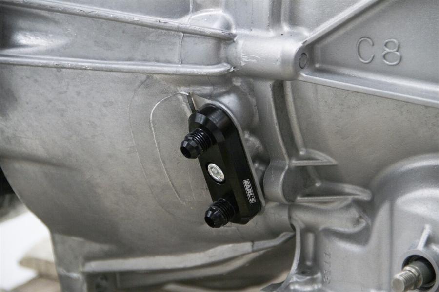 On 6L80 & 6L90 Transmissions the Top Port is the Outlet & Bottom Port is the Return. EARL'S,On 8L90E Transmissions the Front Port is the Outlet & the Rear Port is the Return. EARL'S, EARL'S,This adapter can also be used on the GM 8L45E transmission, but you will need a slightly shorter mounting bolt (about 3/16" shorter).
