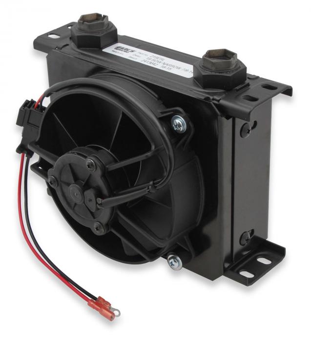 Earls new premium quality UltraPro oil coolers are ideal for all high performance applications. These aluminum stacked plate style coolers are made using state of the art brazing techniques for a durable and long lasting premium cooler that is highly efficient w/ minimal pressure drop. These fan coolers are available in 3 sizes & feature a premium cooling fan & aluminum shroud. These coolers feature -10 AN O-ring female ports and are used with special ORB cooler fittings (-6 AN, -8 AN, -10 AN, or -12 AN) and AN hose ends. Black Finish.