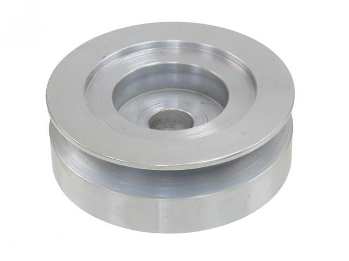 Alternator pulley, 3 5/8" O.D. zinc plated steel. 1963-65 w/327 and mechanical lifters. 1966-71 w/427 or 454 and power steering