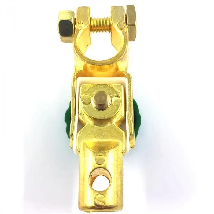 Our patented Top Post Battery Disconnect switch is designed to be used with General Motors style batteries with the connections on the top. A simple twist of a knob provides a convenient way to quickly disconnect and reconnect power from an automotive battery. This switch provides a clean, solid, low profile connection to GM top post batteries. The switch makes it simple to disconnect your battery to work on your vehicle or the knob can be removed to prevent theft.