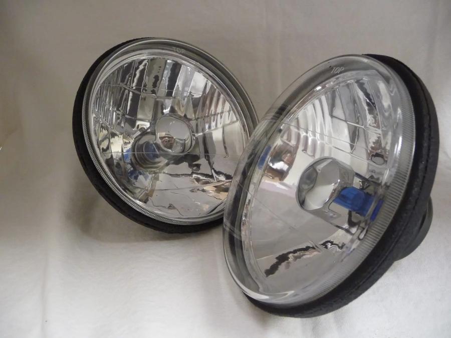 Ok, you started with OEM headlights and you quickly found out you are still not seeing the road. The old OEM convex parabolic lens of yesteryear with the prisms built right into the lens blocks approximately 50% of the light from escaping the headlight. Which means less light to see the road. In contrast, RedLine LumTronix crystal clear lens gives you 50% more light and is designed with a special side lens to extend past your retainer ring. This lens is inside a lens designed to provide more side light, truly a safety innovation. The Halogen bulb is blue but when turned on it illuminates a bright white light without a blue tint.
