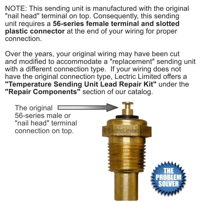 | Chevrolet | Yeoman | 1958 | original 1/2 x 14 N.P.T.F., (correct resistance and connection, produces accurate gauge display) |