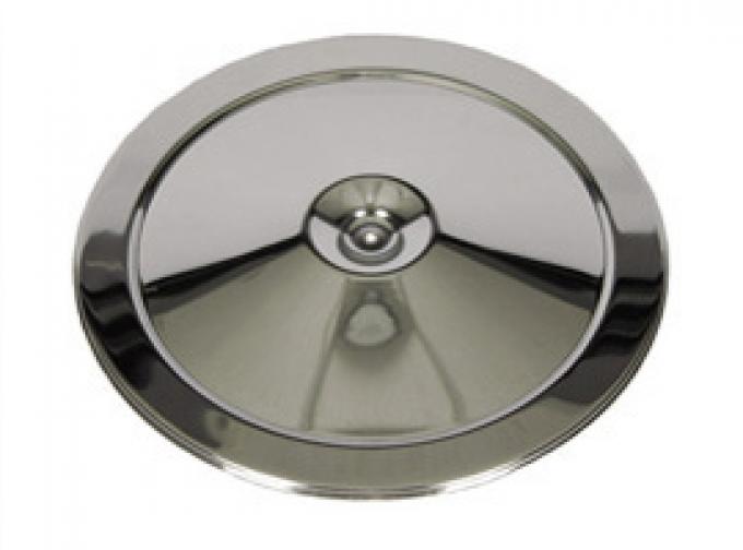 OE quality triple chrome plated accurate reproduction 4 barrel carb air cleaner lid. Not a generic mass market chrome part. Same lid as used on licensed open element assembly. Original gauge stamping with show quality finish. For all GM open element, cowl induction or ram air systems.