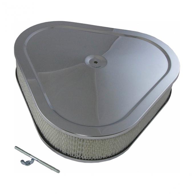 The 14" triangle filter has a chrome plated steel top, flat base and a chrome wing nut.