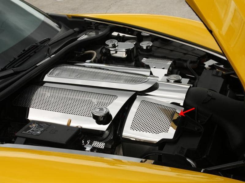 Dress up your Corvette with our polished stainless steel Air Capacitor Cover. These trim pieces are designed to fit all 2008-2013 LS3 Corvettes over the a/c air capacitor and adds a clean stylish look to your Corvette engine bay.