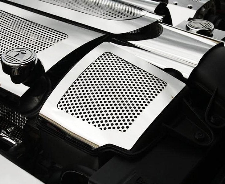 American Car Craft 2008-2013 C6/GS Corvette - Air Capacitor Cover Perforated 2Pc, Polished Stainless Steel 043057: