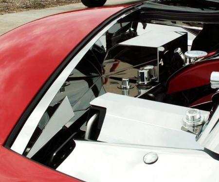 Dress up your Corvette with our polished stainless steel Air Capacitor Cover. These trim pieces are designed to fit all 2008-2013 LS3 Corvettes over the a/c air capacitor and adds a clean stylish look to your Corvette engine bay.