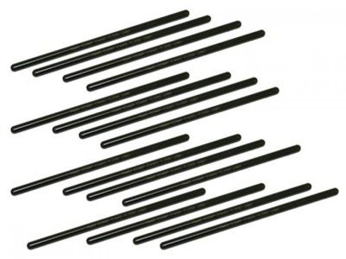 The one piece design from seamless, chromemoly tubing ensures the ultimate in strength. The ends are precision formed, yielding added thickness in the critical tip area for strength, while maintaining constant wall thickness and concentricity. The pushrods are then heat treated to insure compatibility with guideplates and for maximum s