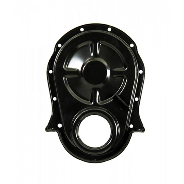 Correct Reproduction of the original GM timing chain cover with welded on timing tab for 1966 Impala, Bel Air, Biscayne & Caprice with 7" harmonic balancer . GM replacement timing chain covers use a timing tab which bolts on with the timing chain cover bolts. Many aftermarket timing covers are very thin, chrome plated and have fancy logos stamped into them. If you are doing your Impala correct, you will need this quality reproduction from Late Great Chevy.