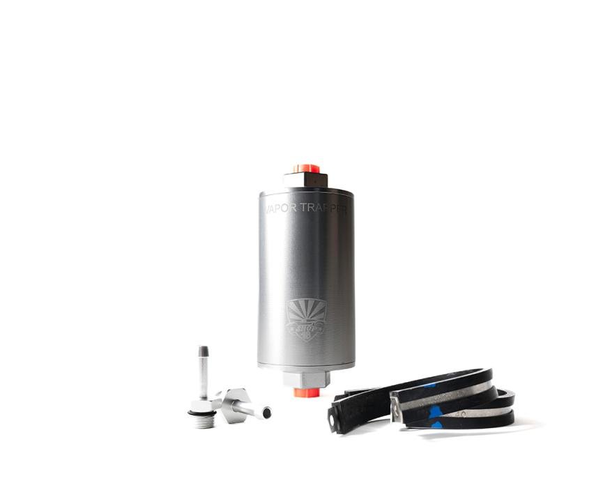 The Vapor Trapper™ can be easily mounted using two 2-1/2” clamps put in line with your fuel tank vent line. Use #6 AN O-ring Boss fitting (barb fittings with a rubber fuel hose or a threaded AN fitting for a more custom installation). Make sure to install the Vapor Trapper™, or at least the inlet line, far above the fuel tank to avoid liquid fuel getting into the filter. Fuel getting into the Charcoal media drastically reduces the performance of this product. If this occurs, please contact us so we can recharge your Vapor Trapper™.
