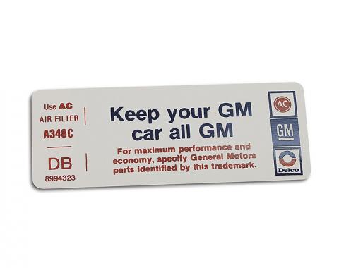 Vehicle tune-up & emissions control decal, engine code F, all w/ 390 h.p. On early 1968 cars the decal is located on the top of the radiator and on late 1968 cars the decal is located on firewall behind the master cylinder. This decal…