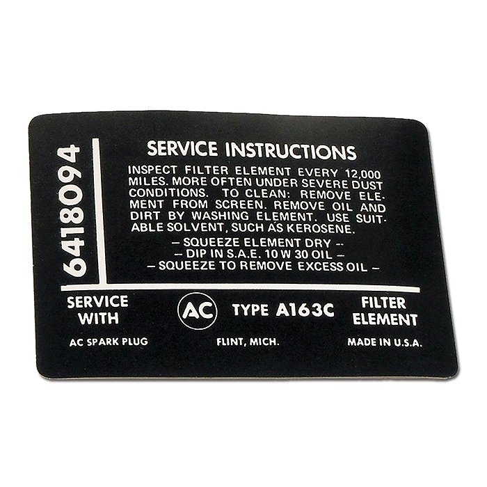 Corvette Decal, Air Cleaner Instructions Fuel Injection, 1965: