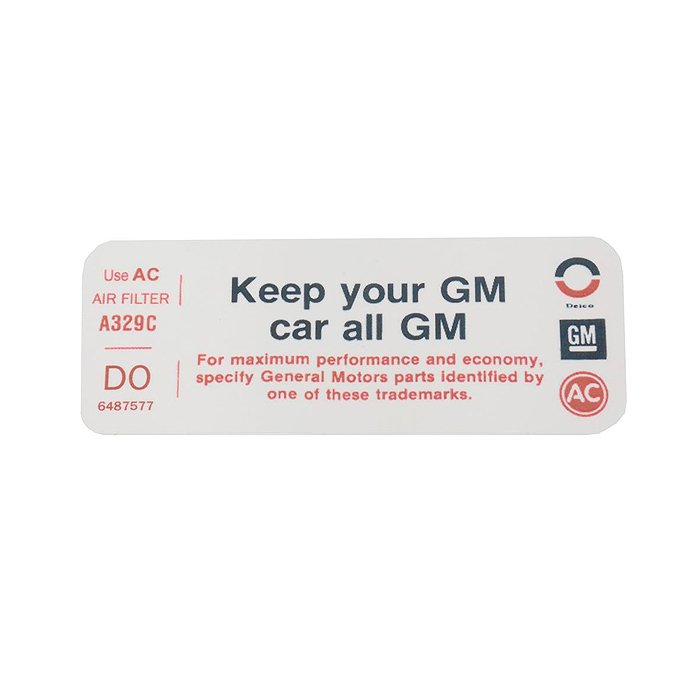Corvette Decal, Air Cleaner Keep Your GM Car All GM, 1973: