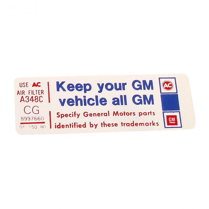 Corvette Decal, Air Cleaner Keep Your GM Car All GM, 1980