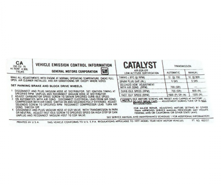 Corvette Label, Emission 300/350 HP, 1969: