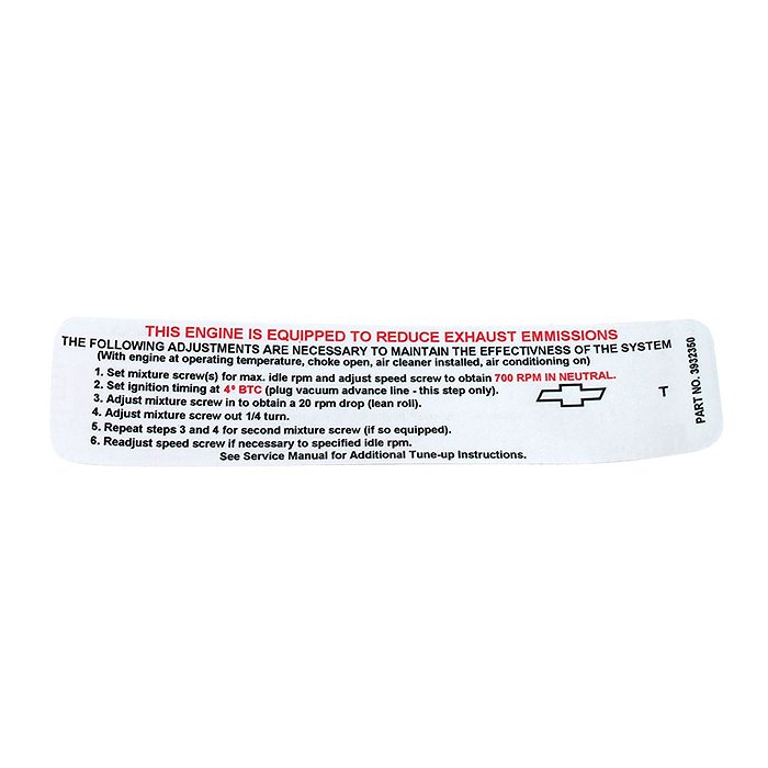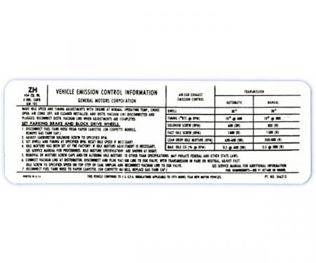 Corvette Emission Control Decal, LS4, 1974