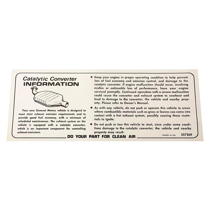Corvette Decal, Catalytic Converter, 1976-1978: