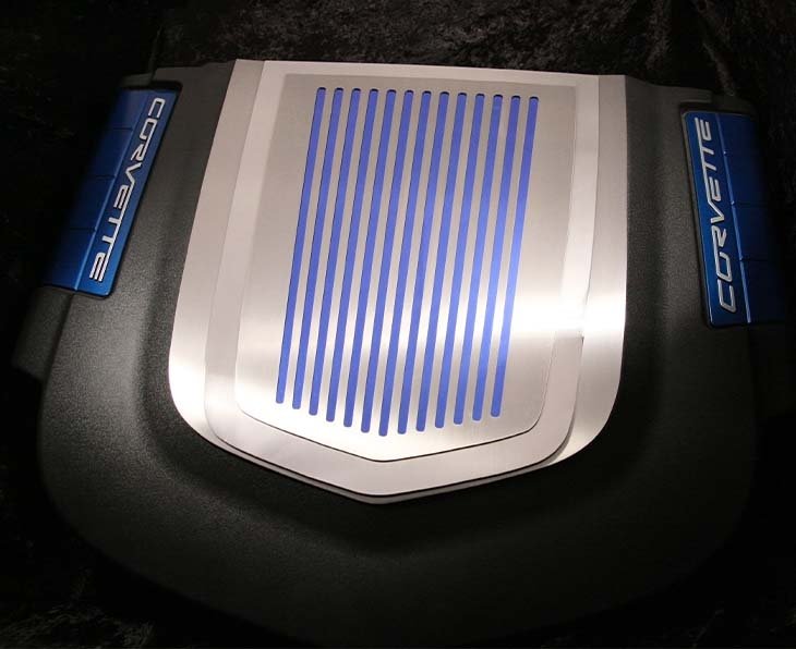 Our product line specialty extends from the interior to the exterior of your ride and into the engine bay. We also create state of the art vinyl decals and can create one of a kind custom etched windows and laser etched stainless steel products.