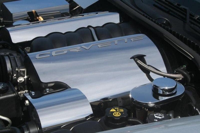 American Car Craft 2008-2013 C6/GS Corvette - Fuel Rail Covers with CORVETTE script, Polished Stainless Steel, Dry Sump Opt. 043115