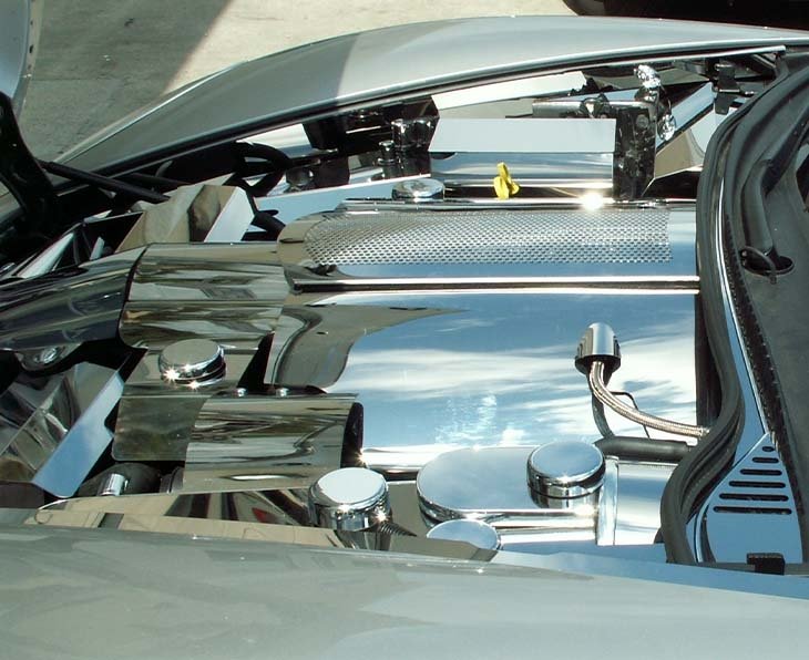 Dress up your C6 Corvette with our polished stainless steel Fuel Rail Covers with "CORVETTE" script. Also available for vehicles equipped with a dry sump pump. Choose type, with or without dry sump from the drop down above. These trim pieces are designed to fit all 2008-2013 C6 LS3 Corvettes over the plastic fuel rail covers and add a clean stylish look to your Corvette engine bay. Pictured are the Fuel Rail Covers designed for NO dry sump pump. The dry sump pump version will not have an oil fill hole.