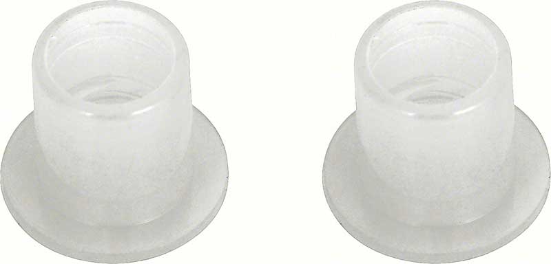 Reproduction accelerator firewall bushings for various 1955-69 GM models. These bushings are required to install the accelerator rod support correctly. They help to eliminate excessive play in the gas pedal pad while promoting smoother, more even accelerator operation. Measures 1/2" Long, 5/16" I.D.. Sold in pairs.