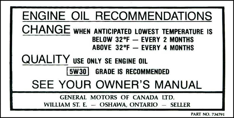 This hard to find Oil Change Decal will be the perfect addition to any 1968-1969 Canadian Corvette.