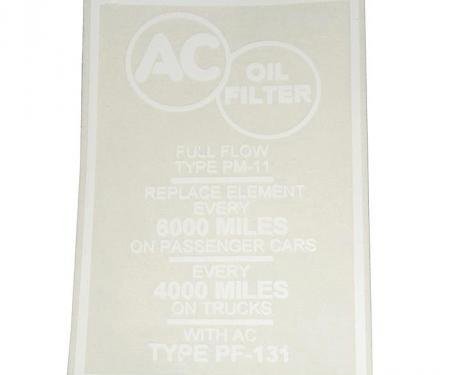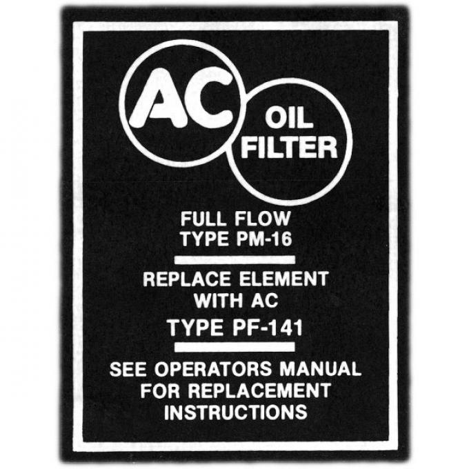 Corvette Decal, Oil Filter, PF-141, 1958-1967: