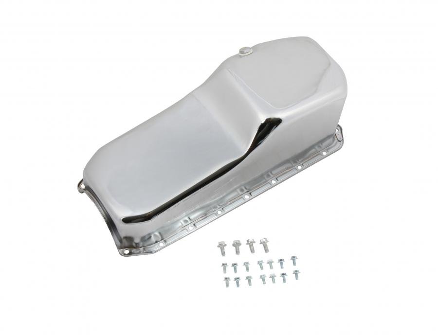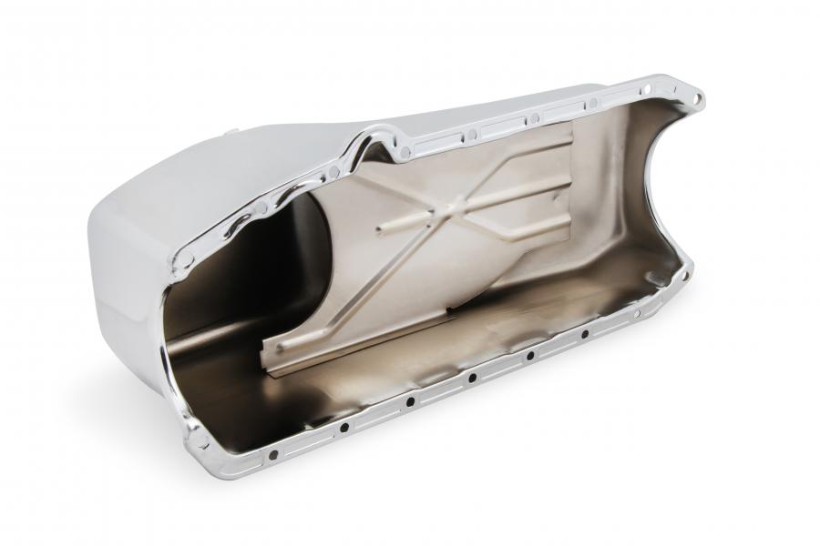 For Use With 1986-1991 Chevy Small Block 305/ 350 Cubic Inch; 4 Quart Capacity; Without Windage Tray; Rear Wet Sump; Without Baffle; Chrome Plated; Steel