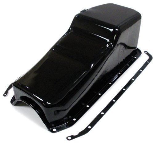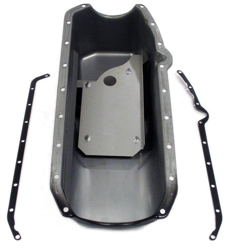 Fits SB Chevy Pre-1980 V8 283-350 (4 qts capacity). Made with thicker material, 2 trap doors, crank scraper with windage tray and reinforced rails. Dipstick on driverside for an exact fit for all small block high performance models including the 302. Replaces GM Part # 360450.