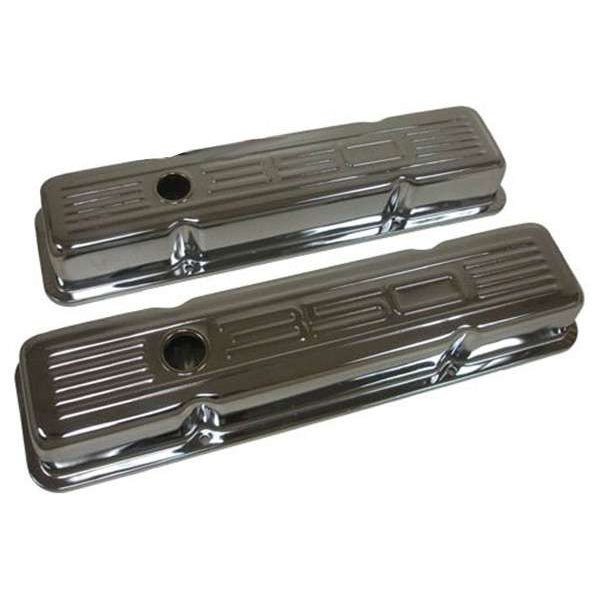 Chevy Small Block Chrome Valve Covers With 350 Logo, Tall, 1958-1986