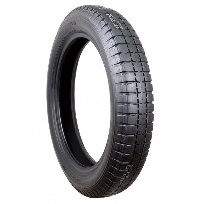 The Ensign triple is a street legal racing tire for classic sports cars, such as MG T-series, Riley, BMW 328, Bugatti and many more. These tires feature a soft compound for the ultimate traction, and the 450H19 sizing replaces the vintage style 27x4.40 size tires. The tire is H speed rated for safe service up to 130 miles per hour. This a bias ply tire, and it is designed for use with a tube.