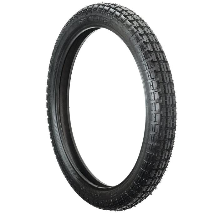 The Ensign Universal road tire is a perfect fit for classic European and Japanese motorcycles from the 1960's and 1970's. Its block-style tread pattern and 300S21 sizing offers excellent traction on or off road, and provides an authentic look for vintage motorcycles. We always suggest buying new tubes and rim strips any time you buy new tires for your classic motorcycle.