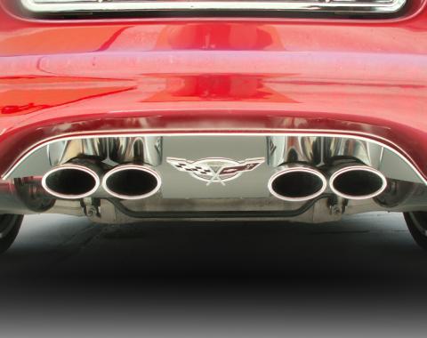 Dress up your Corvette with our Polished - Stainless Steel, Stock C5 Exhaust Filler Panel with C5 Crossed Flag emblem. These trim pieces are designed to fit all 1997-2004 Corvettes around the stock exhaust tips and add a clean…