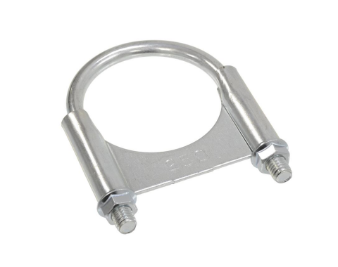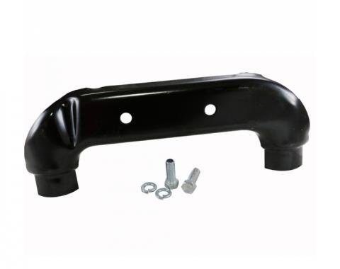 Exhaust pipe support, use with 2 1/2" pipes with factory systems with catalytic convertor. Attaches to transmission mounting boss and holds pipes firmly in position.